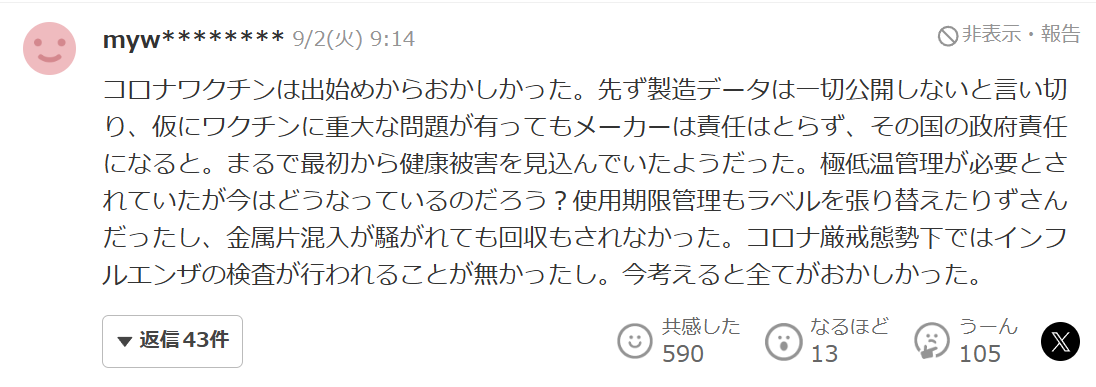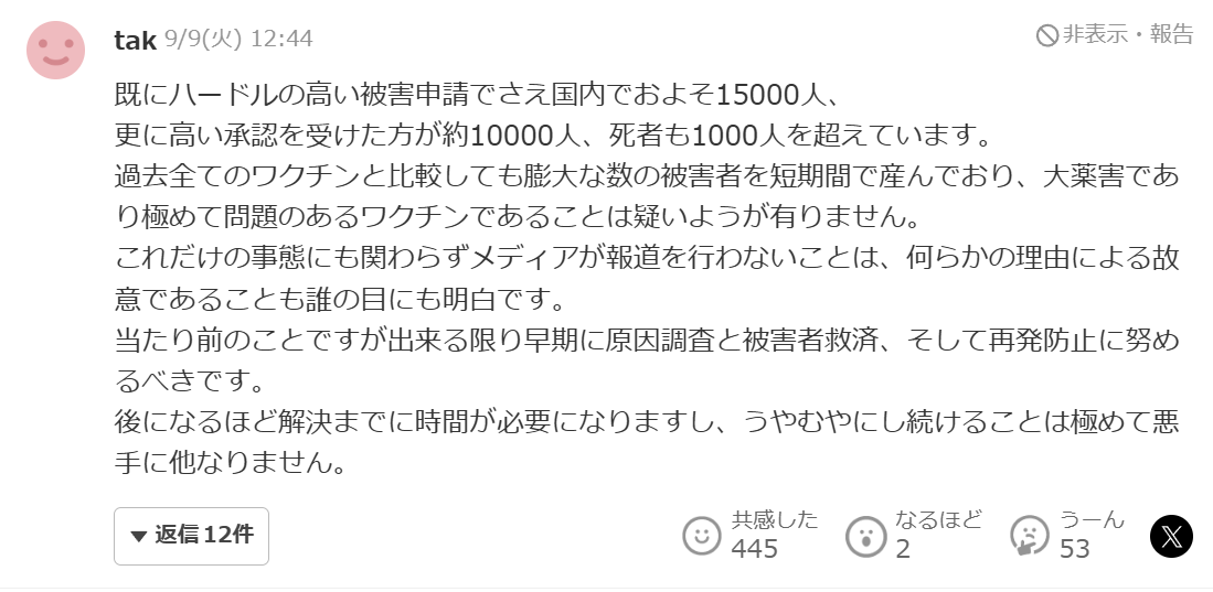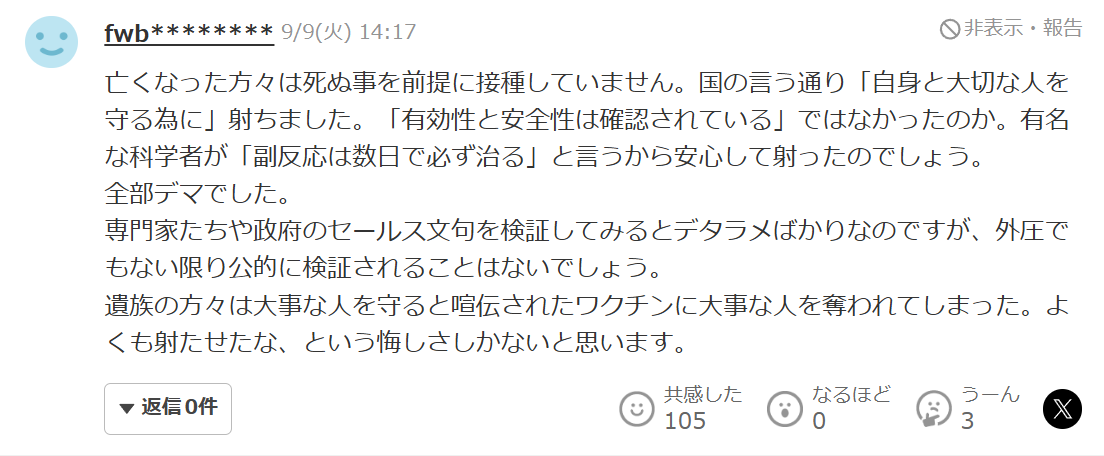「(打ってなきゃ大丈夫だった人が)ワクチンのせいでコロナ感染/コロナ後遺症/コロナ死」というパターンもあるのでややこしくなってる